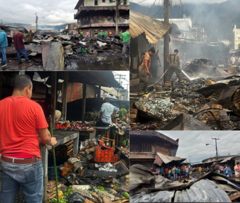 Un oficial del Cuerpo de Bomberos lamentó: «Jamás debió haber aquí cohetes almacenados en el mercado, miren la desgracia que acaba de ocurrir, muchas familias van a quedar en la calle antes de que finalice el año, esto es lamentable».