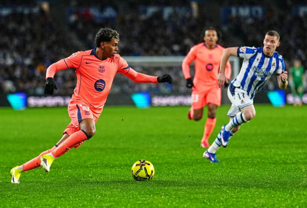 La Real Sociedad abrió el marcador al minuto 32 con un gol de Mikel Oyarzabal, rematando un centro de Gonçalo Guedes en una contra letal mientras los txuri-urdin sufrían. El Barça vio anulados tres goles más, incluido uno milimétrico de Lamine Yamal por fuera de juego y otros por posibles faltas, lo que desató protestas en el banquillo de Flick.