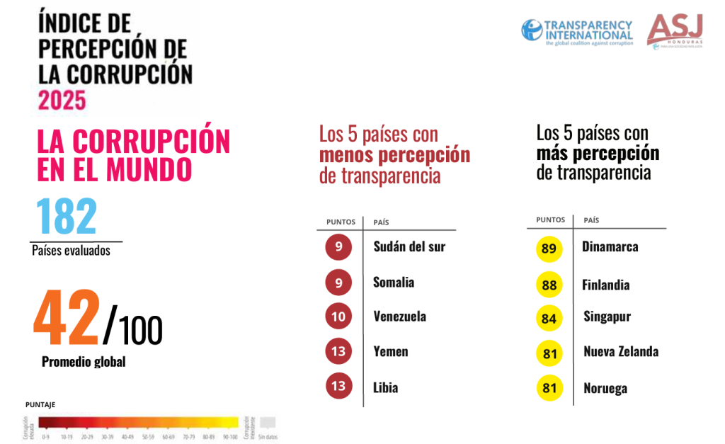 Honduras se mantiene estancada en los niveles más altos de percepción de corrupción a nivel mundial, según el Índice de Percepción de la Corrupción (IPC) 2025 publicado por Transparencia Internacional y presentado este martes por su capítulo local, la Asociación para una Sociedad más Justa (ASJ).